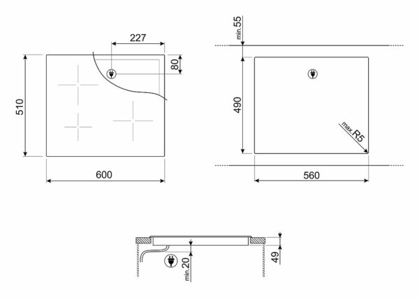 Smeg Design SI7643B Plaque à induction universelle cm. 60 – semi-filo – noir